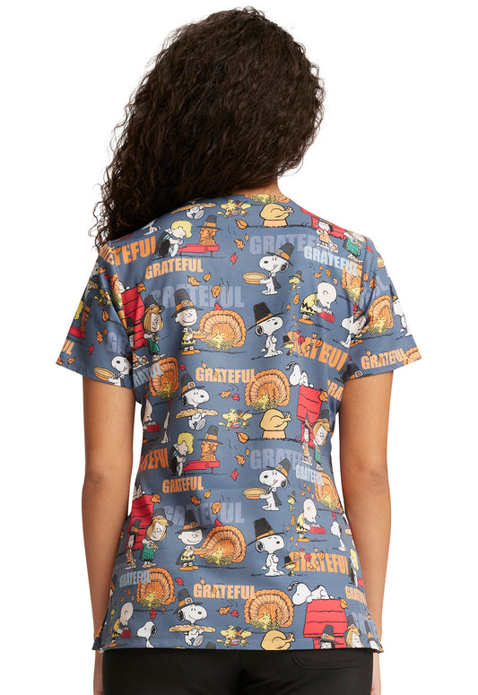Grateful Snoopy Thanksgiving V-Neck Top